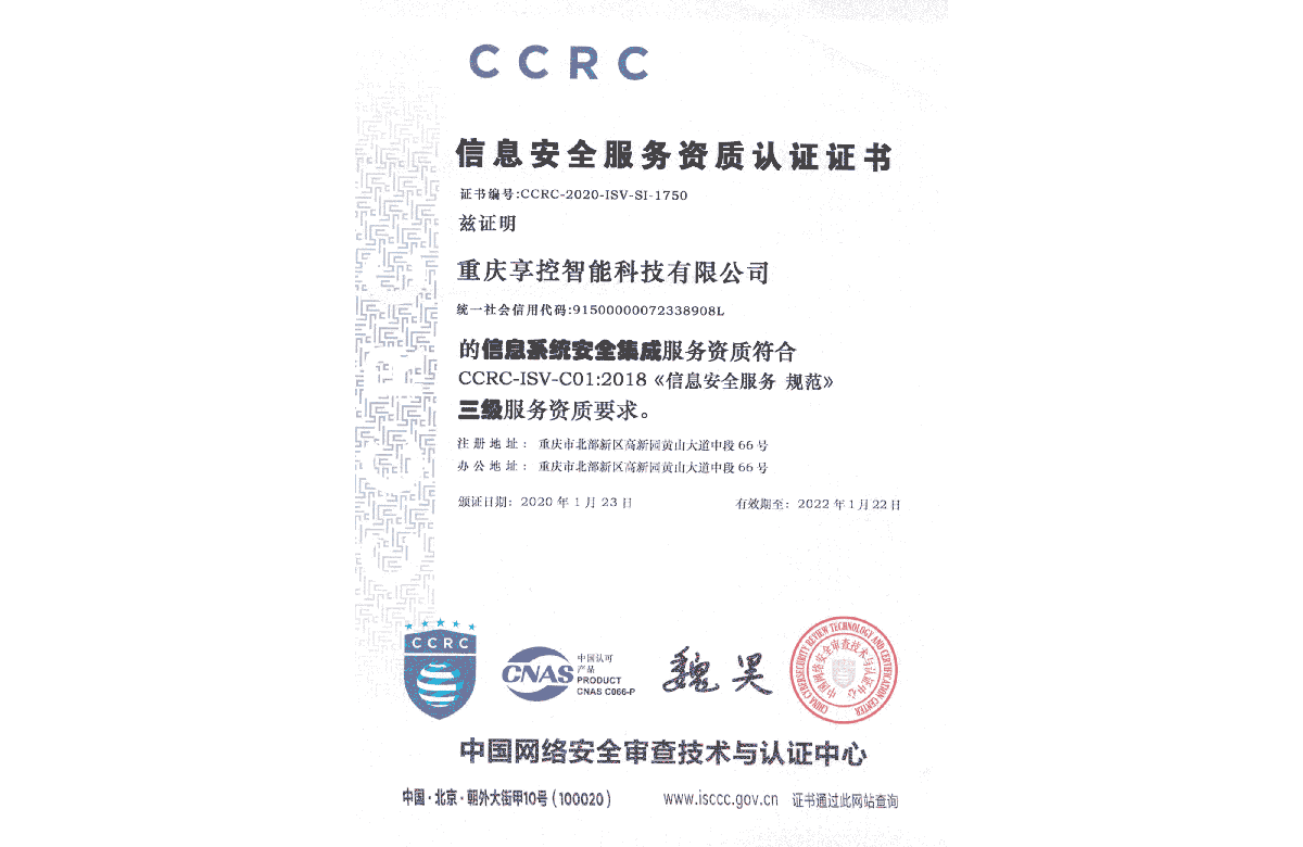 榮獲CCRC信息安全服務(wù)資質(zhì)